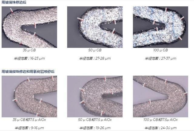 心臟支架、鎳鈦合金支架噴砂機 吉川機械從事噴砂設備研發(fā)、設計、銷售、服務已經(jīng)20多年,行業(yè)一直處于領先位置。在醫(yī)療行業(yè)提供了多種各類醫(yī)療產(chǎn)品噴砂設備,比如:強生醫(yī)療、巴奧米特、新華醫(yī)療、飛渡醫(yī)療、史賽克、魚躍醫(yī)療等。 吉川機械研發(fā)設計的JCK系列精密微型噴砂機 專業(yè)處理心臟瓣膜鎳鈦支架上的氧化層,從支架上去除氧化層有手動和自動兩種噴砂系統(tǒng),處理過程中不會損傷支架本身,不會改變尺寸和形狀,去除氧化層效率可達百分之百,處理后支架表面一致,無顏色誤差,去氧化層效率快,約30秒能處理好一個支架。 經(jīng)過吉川公司工藝工程師測試,用氧化鋁砂進行定向的噴砂處理可以去除氧化層,平滑表面缺陷并改善外圍支架的表面質(zhì)量。支架的受損區(qū)域很脆,但基礎材料鎳鈦諾卻具有延展性。氧化鋁噴砂磨料使用去氧化層,并且對韌性基體的侵蝕最小,從而在支架撐桿的整個長度上形成均勻的表面光潔度。 市場最新的支架設計和醫(yī)療植入物要求更大的邊緣倒圓角。圓形邊緣降低了被植入物卡住,其他風險的可能性。氧化鋁微噴丸的半徑為5-15 m,但新的幾何尺寸指定為接近25 m。該半徑可以通過三種途徑實現(xiàn):延長噴砂周期,使用更大尺寸的氧化鋁或完全使用其他磨料。通過測試,我們了解到更長的噴砂周期可以去除更多的團塊,而較大尺寸的氧化鋁會產(chǎn)生過于粗糙而無法拋光的表面。畢竟,氧化鋁顆粒的形狀為塊狀,邊緣稍尖。這給了我們一個可行的選擇:嘗試使用其他類型的磨料。為了克服這一障礙,我們測試了幾種類型的介質(zhì),發(fā)現(xiàn)用玻璃珠噴砂可以在拐角處形成所需的半徑(最大30 m),而不會除去設備的額外質(zhì)量。結(jié)果是氧化鋁的質(zhì)量提高了十倍。經(jīng)過吉川公司工藝工程師的測試事實說明了結(jié)果的差異。用氧化鋁噴砂處理過的樣品的半徑僅為8-13 m,而用玻璃珠噴砂處理過的樣品的半徑為24-30 m。 經(jīng)過吉川公司工藝工程師最終測試事實證明,最好的心臟支架噴砂工藝需要用氧化鋁砂粗噴砂、再用玻璃珠微噴砂是目前最好的一種噴砂工藝方式。 經(jīng)過粗噴、微噴的產(chǎn)品外徑和內(nèi)徑轉(zhuǎn)角處的半徑可以實現(xiàn),而所需的附加材料去除最少。半徑的大小可以有效地控制,因為它是基于圓形磨料,玻璃珠的大小和速度的??梢钥刂凭哂懈郊影霃降闹Ъ軈^(qū)域。通過機械加工表面,有助于保持支架的疲勞壽命。玻璃珠磨料通常用于必須保持嚴格公差的噴丸處理應用中。玻璃珠對支架表面進行噴丸處理,不會去除任何材料或數(shù)量可忽略不計的材料。如下所示,玻璃珠的尺寸很重要。玻璃珠的尺寸越大;邊緣越圓。玻璃珠有35 ,50 和100 兩種。讓我們看一下使用每種尺寸的樣本測試的結(jié)果。此處顯示的未噴砂的支架表面(500x)邊緣鋒利,并受到制造損壞。半徑范圍僅為3-8 m。為什么用兩種磨料處理比單獨用氧化鋁處理好? 玻璃珠無法消除制造過程中產(chǎn)生的浮渣,回彈和其他損壞;只有氧化鋁可以。氧化鋁不能產(chǎn)生真正的圓形邊緣。但是,它確實可以提供電拋光所需的理想表面光潔度。一個不能替代另一個。通過使用多步驟過程,植入物表面可以使用經(jīng)過驗證的相同設備獲得兩全其美的效果。在該過程中添加第二種研磨劑聽起來可能需要更多的勞動力,但實際上比其他修邊過程更有效。例如,電拋光可以產(chǎn)生較大的半徑,但它也會從整個零件中去除過多的材料,而不僅僅是角部,從而損害了支架的疲勞壽命。