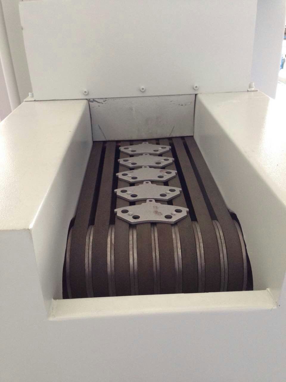 剎車片的生產(chǎn)過程中質(zhì)量尤為關(guān)鍵,其中最重要的一個(gè)生產(chǎn)環(huán)節(jié),鐵才與剎車片雛形粘合,粘合前需要通過自動(dòng)噴砂機(jī),才能有效的粘合。